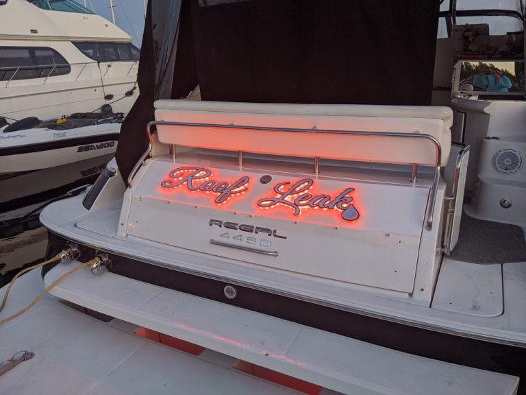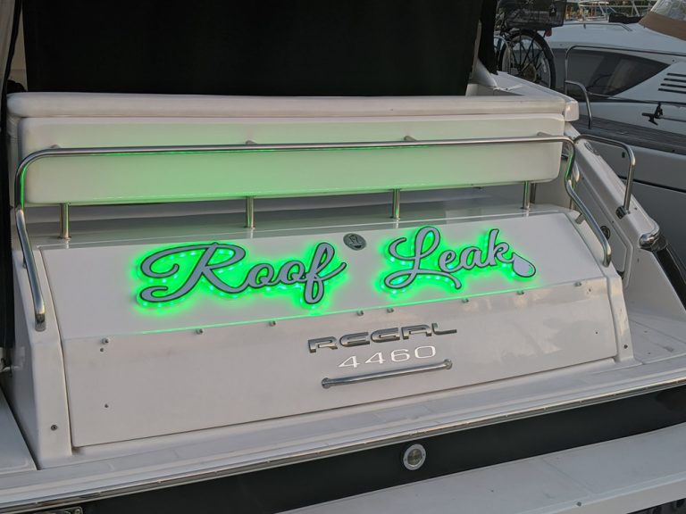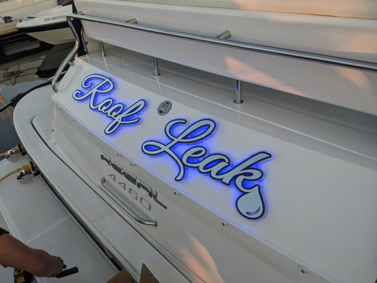 Adding lighting features to your signs helps your brand stand out during off-hours, which can have a big impact on your business. And our LEDs are colour-matched to your unique brand with mounting options available for almost any indoor or outdoor facade. We design and fabricate lights for indoor and outdoor use with sleek materials, and add the power of visibility to showcase your logo, brand name, or boat name.